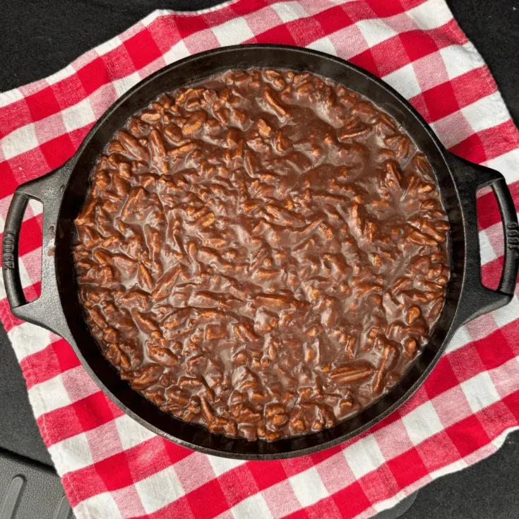 Baked in cast iron for a rustic backyard feel, this dessert works beautifully in the oven or on the grill. It’s simple, rich, and big on Southern charm — perfect for Christmas gatherings, cookouts, or any night you want a decadent chocolate fix.